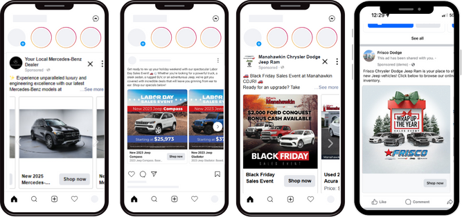 Each campaign utilizes database sales data to properly rank and map out the best geos to target. A combination of DMS data ramping and In-market auto-intender layers create a very potent ready-to-buy or trade audience to serve social ads to.